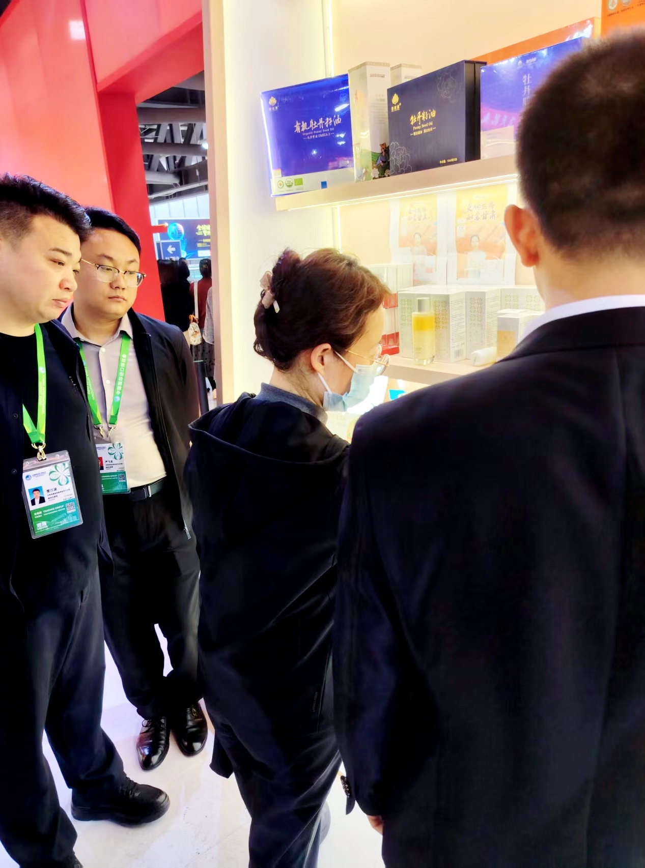 面对观众的询问,工作人员耐心解答:“牡丹籽油是国家新资源食品,中资国业的牡丹籽油是国家认证的一级食用油,选用自己基地的有机原料,在自己的现代化工厂低温冷榨萃取,最大程度地保留营养,保证品质,让大家都能用上‘放心油’。”