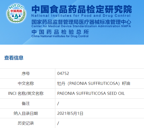 牡丹之美,世人皆知,但少有人知道,当花瓣落尽,牡丹的精华尽数凝聚于“籽”,其籽通过低温冷榨技术制成的牡丹籽油,含有丰富营养成分,是我国独有的天然护肤品原料,已进入《已使用化妆品原料目录》I,在化妆品护肤领域备受青睐。