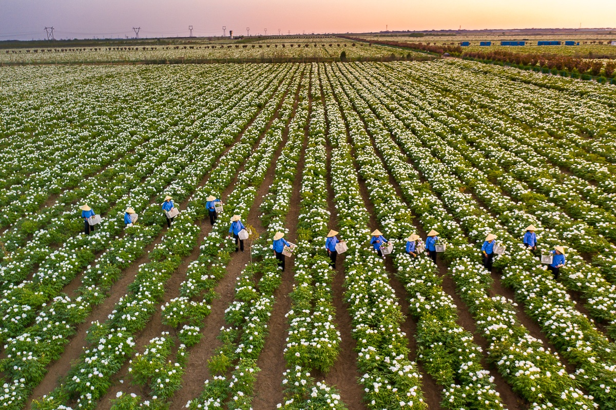 4月——凤丹牡丹初绽时期,花农们在凌晨的中资国业21760亩自有有机牡丹种植基地,亲手采摘牡丹花,确保凤丹的功效能高效发挥。